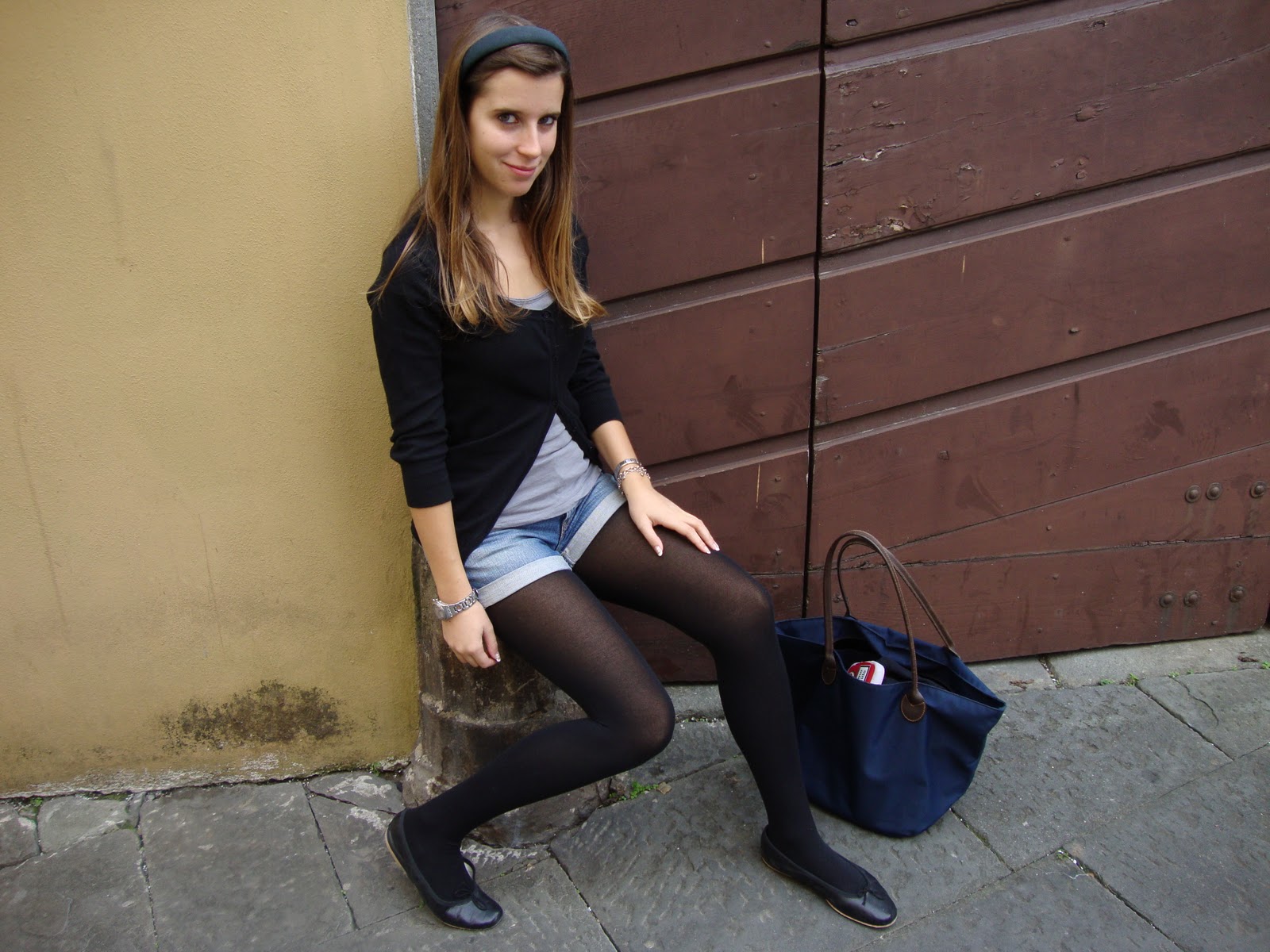Era da tanto che volevo provare l’abbinamento jeans-collant. Visto e rivisto dalle varie blogger e in tutto il web, ho voluto comunque (in ritardo xD) dare anche una mia interpretazione a questa tendenza. Un po’ romantica forse, effetto dovuto al cerchietto e alle ballerine, ma in fondo mi piace! 😀